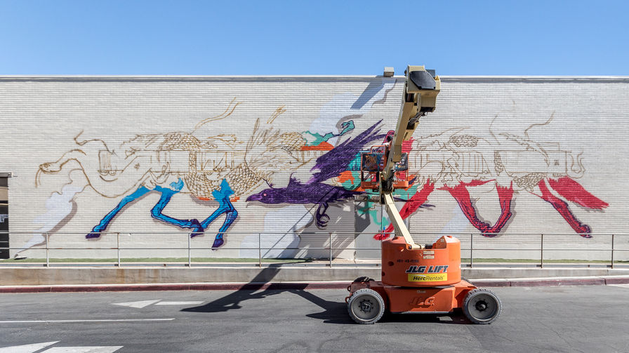 Nuri Amanatullah is an Antelope Valley-based painter, illustrator, and designer whose stylized, graphic depictions of flora and fauna are represented in a variety of mediums including illustration and large-scale murals. Employing both traditional techniques and digital media, Amanatullah has designed for Disney, storyboarded for Uber, illustrated for Airbnb, and painted walls at numerous sites around the Antelope Valley including a mural with Antelope Valley Walls in 2018, as well as in Flint, Michigan as part of the Free City Mural Festival. He has also lent his talents to the non-profit Housing Corporation of America for the past three years helping to jump-start and brand a wide variety of art programs at affordable income housing properties.