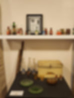 Figure 6: Display of Antelope Valley Beverage bottles, advertisement, other historic bottles, and Mertie Webber’s picnic box at Western Hotel Museum.